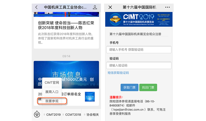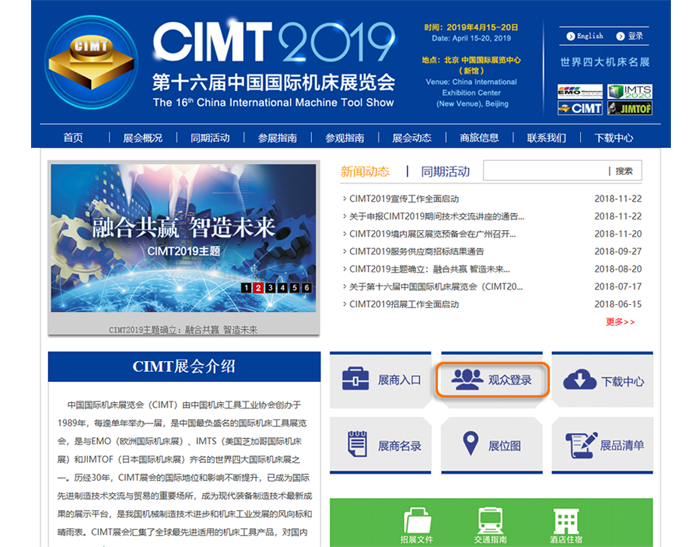 进入CIMT官网:www.cimtshow.com,点击进入“观众登录”,按要求填写相关表格并提交即可。
